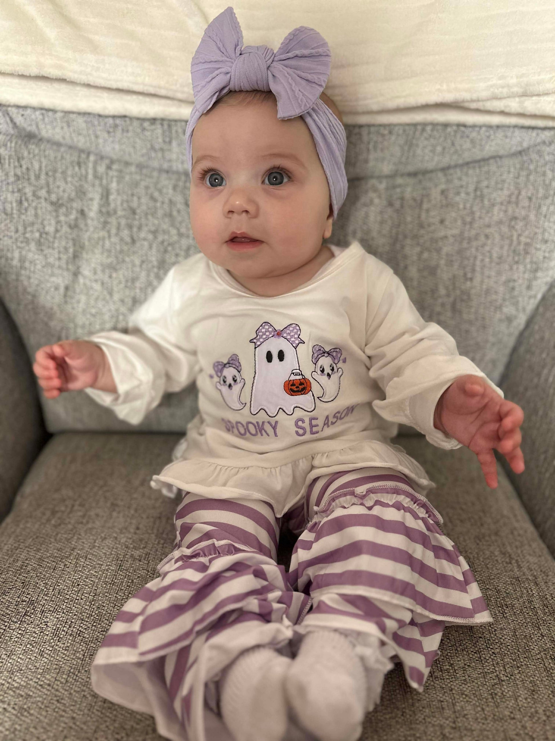This purple cable knit bow headband is made from soft nylon material which is super stretchy and will stretch and grow as your little one continues to get bigger.