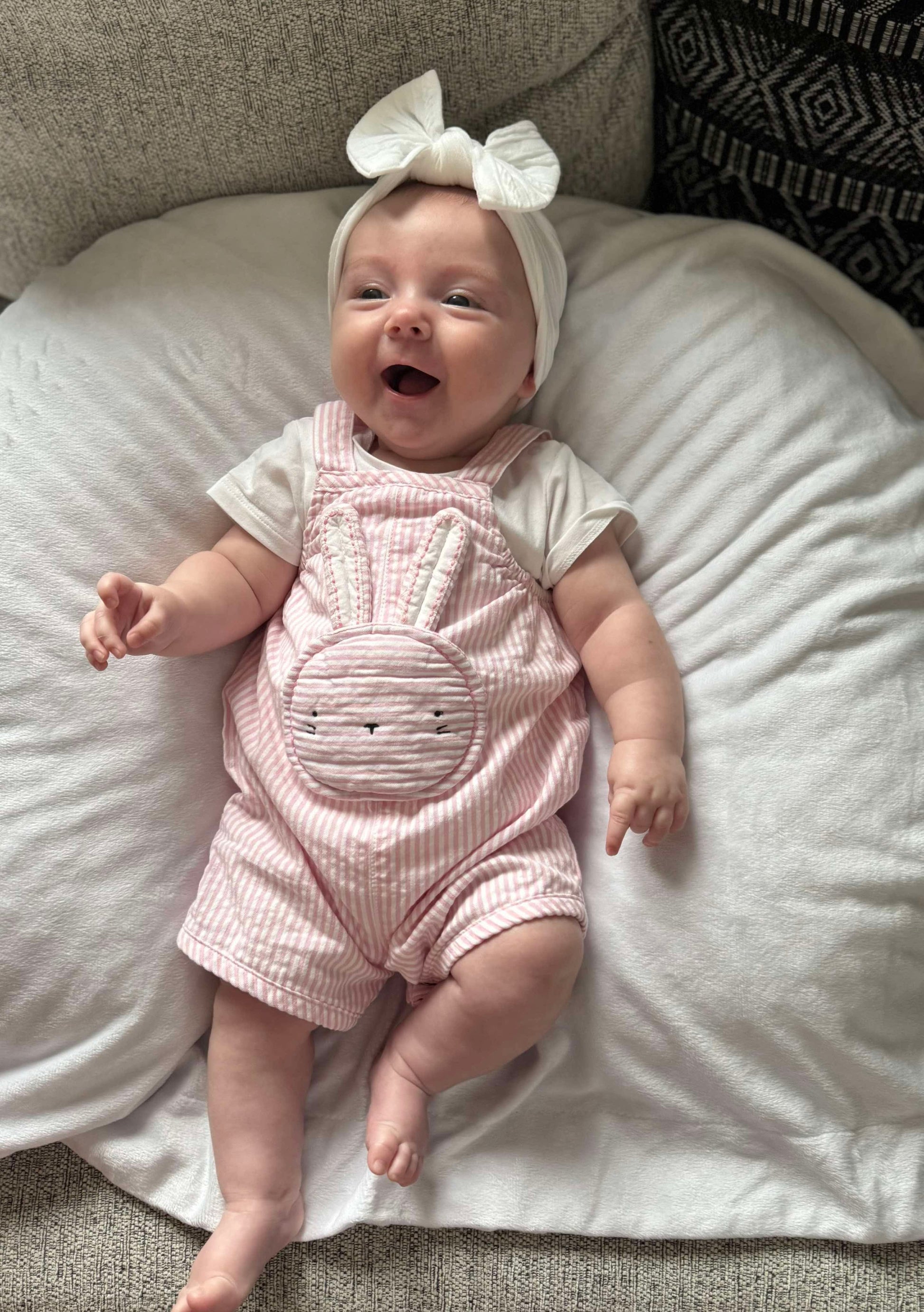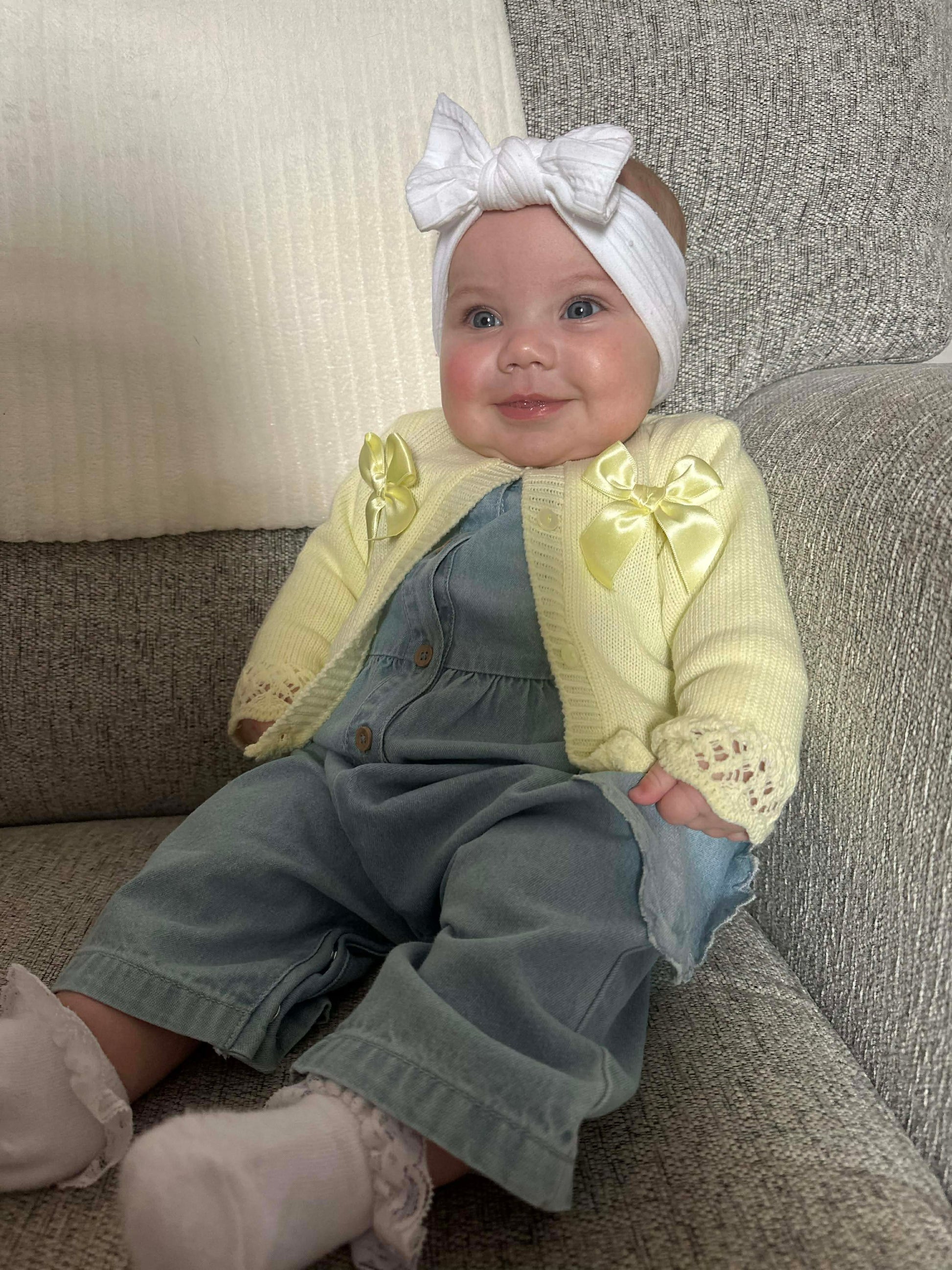 This white cable knit bow headband is made from soft nylon material which is super stretchy and will stretch and grow as your little one continues to get bigger.