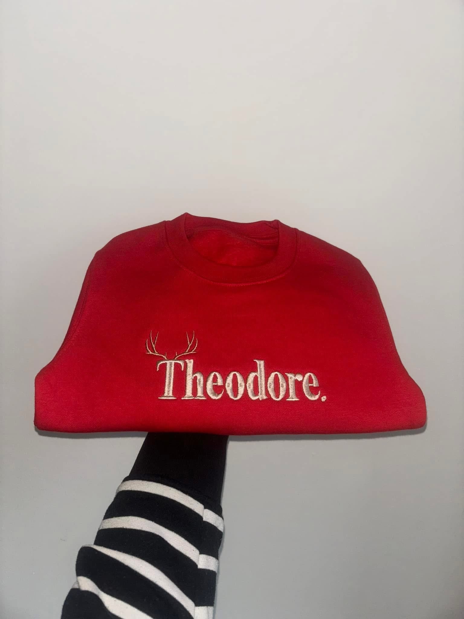 Make the festive season extra special with this cosy personalised Christmas sweatshirt. Beautifully embroidered with your chosen name, the design features adorable reindeer antlers extending from the lettering